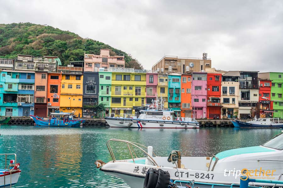เราเดินทางต่อมายัง Zhengbin Port Color Houses ใกล้ๆ กับ Heping Island Geopark เมืองที่สวยเหมือนอยู่ เวนิส อิตาลี อาคารบ้านเรือนที่ถูกตกแต่งทาสีสดใสหลากหลายสี ที่เที่ยวใหม่ของไต้หวัน เพื่อนๆ สามารถเดินทางจากเหอผิง Zhengbin Port Color Houses มายังจากสถานี Keelung ไปยัง ป้ายรถบัส Zhongyi Station ขึ้นรถบัสสาย 101 หรือ 103 ลงที่ป้าย Zhengbin Fishing Port แล้วเพื่อนๆ เดินต่ออีกประมาณ 3-5 นาที ก็จะถึงจุดชมวิวบ้านสีสันสดใส ที่มีร้านอาหารและคาเฟ่ริมท่าเรือที่น่านั่งพักผ่อนหย่อนใจ สามารถแวะพักผ่อนพร้อมชมวิวได้