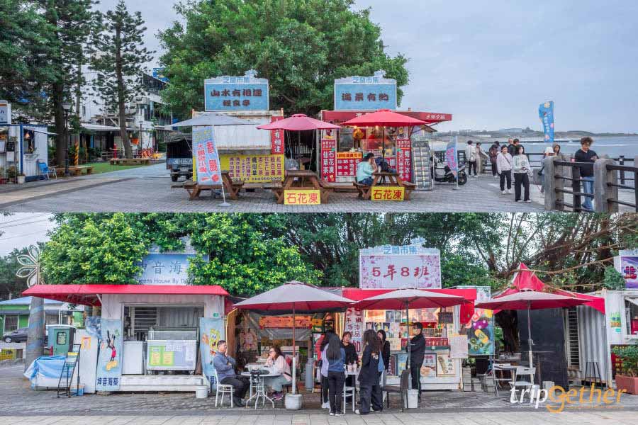 มีร้านค้าเล็กๆ ขายของกินเล่นสุดคึกคักบริการผู้ที่มาท่องเที่ยวด้วยนะ ได้นั่งกินไปด้วยชมวิวติดทะเลไปด้วย ทำให้รู้สึกเหมือนได้เดินเล่นอยู่ในแอเรียที่เติมพลังชีวิตที่สุดแสนจะมีเสน่ห์และมีเอกลักษณ์ไปด้วยใจฟูสุดๆ