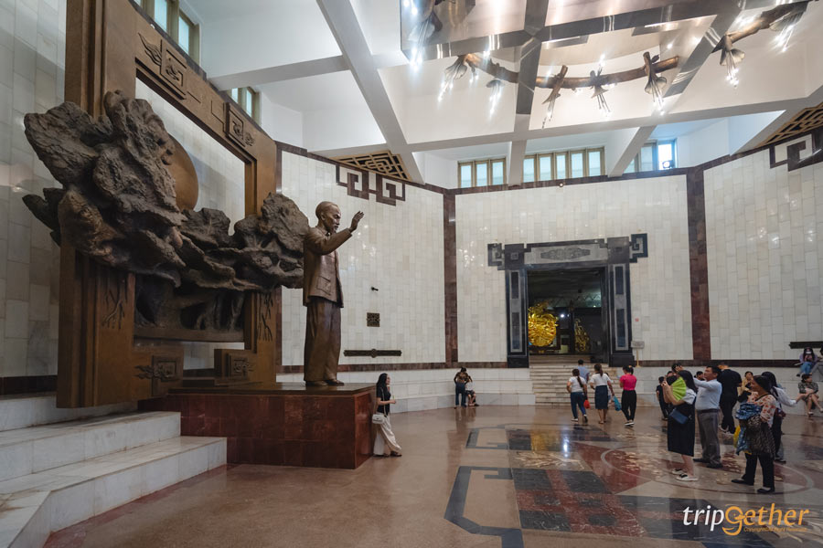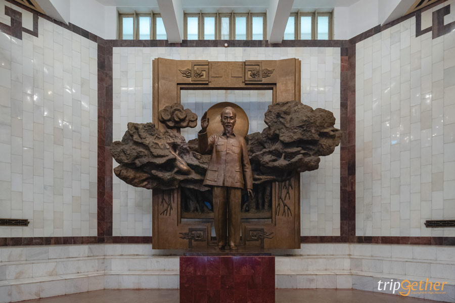 เมื่อเดินเข้ามาบริเวณโถงกลาง จะพบกับรูปปั้นของประธานาธิบดีคนแรกของเวียดนาม