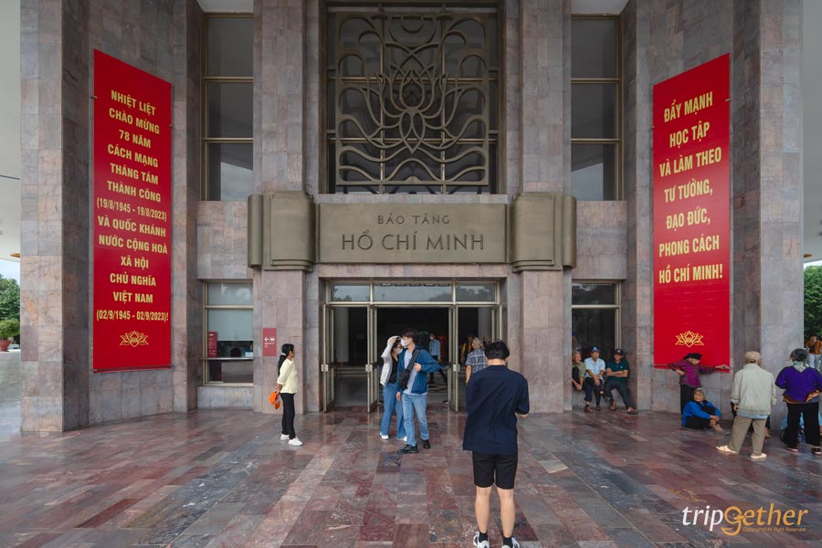 ออกจากสุสานแล้ว เราเดินทางมายังพิพิธภัณฑ์โฮจิมินห์ ซึ่งอยู่ในบริเวณเดียวกับสุสาน ระยะทางเพียง 500 เมตร เพื่อเข้ามาชม และเรียนรู้เรื่องราวทางประวัติศาสตร์ของเวียดนามในอดีต