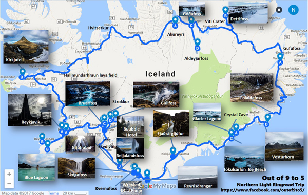หลังจากที่ได้เห็นรีวิวหลายๆคนเพื่อมาแพลนทริปไปเอง ผมก็ไปทำการบ้านเพิ่มเพื่อเตรียมตัวไปเที่ยวเองที่ไอซ์แลนด์และได้เจอที่ๆยังไม่ค่อยมีคนไป ซึ่งส่วนมากที่พวกนี้มักจะสวยมากและนักท่องเที่ยวไม่เยอะ หลายๆที่ที่ไปหาเจอได้ง่าย แต่ก็มีบางที่ที่ต้องจอดรถแล้วเดินตามรอยเท้าคนอื่นเข้าไปเพราะไม่มีทางบอกหรือต้องเปียกเดินเข้าหลืบไปเจอ ผมจึงมาแชร์ข้อมูลวิธีการไปให้ถึงที่เที่ยวอย่างละเอียด ทั้งที่เที่ยวนักท่องเที่ยวไปกันและที่เที่ยวที่ยังไม่ค่อยมีคนไป พิกัดทุกที่ใน Google My Map ที่ผมทำไว้ก่อนไปเที่ยว เพื่อเวลาไปถึงแค่จิ้มพิกัดใน Map กันการเสียเวลาหลงได้ดีมากครับ รวมถึงวิธีการล่าแสงเหนือ ดูข้อมูลพยากรณ์ล่วงหน้าอย่างละเอียด เที่ยวเองรอบเกาะง่ายมากครับ ไม่ต้องนอนรถบ้านก็ราคาต่างกันไม่มากครับ เผื่อคนที่อยากไปในอนาคตครับ