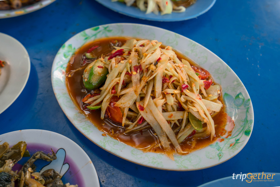 ส้มตำป้าติ๋ม ร้านตำหลวงพระบางในตำนานที่เรียกได้ว่าใครที่มาหลวงพระบางต้องไม่พลาดที่จะเช็คอินร้านนี้ ตัวร้านเป็นร้านแบบดั้งเดิมหลังเล็กๆ มีที่นั่งกระจายอยู่หน้าบ้านและฝั่งตรงข้าม เมนูของทางร้านก็จะเน้นเป็นเมนูส้มตำ หนึ่งในนั้นก็คือตำหลวงพระบาง ที่มีเอกลักษณ์คือมะละกอเส้นเป็นแบบฝาน รวมทั้งเมนูกินคู่กันอื่นๆ อีกเพียบ ไม่ว่าจะเป็น แหนมย่าง ปิ้งไก่ ไคแผ่น และอื่นๆ อีกหลากหลาย