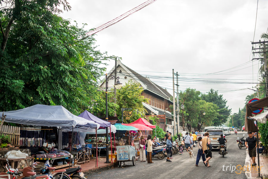 ตลาดเช้าหลวงพระบาง แหล่งรวมของกินยามเช้าสุดคึกคักในเมืองหลวงพระบาง ซึ่งมีอาหารให้เลือกอย่างหลากหลาย ทั้งอาหารพื้นเมืองที่มีทั้งที่เราคุ้มชินกัน อย่างข้าวเหนียวหมูย่าง อาหารปิ้ง ขนม รวมไปถึงอีกหลายเมนูที่เป็นของพื้นถิ่น และอาหารป่า นอกจากนี้ในย่านตลาดเช้ายังมีร้านอาหารและร้านกาแฟให้นั่งกินอีกมากมาย