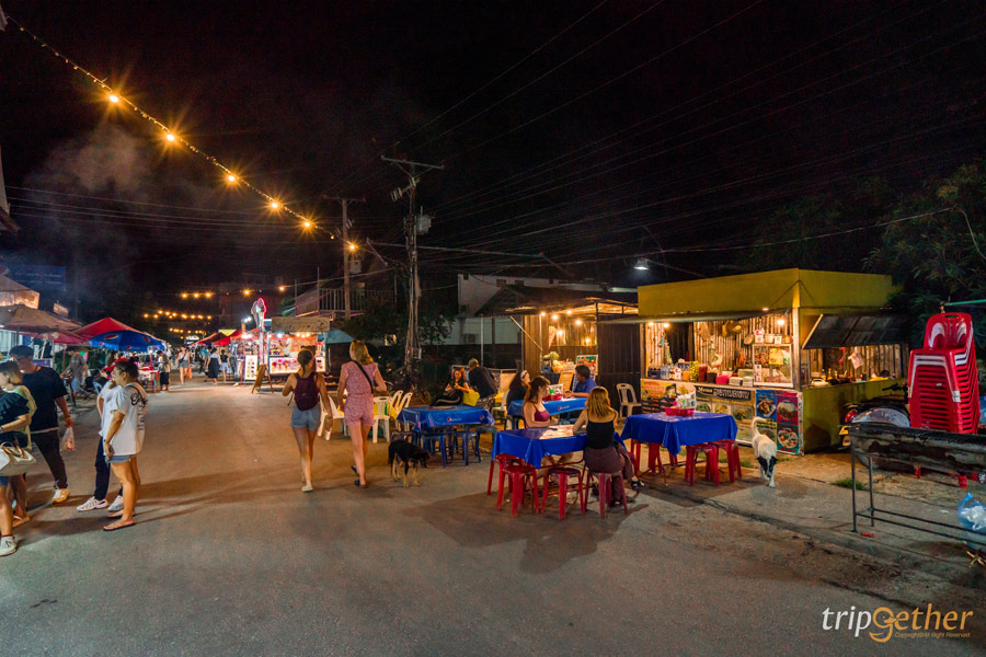 ถนนคนเดินวังเวียง แหล่งรวมของกินยามค่ำคืนของวังเวียง มีทั้งขนมและอาหารประเภทต่างๆ ไม่ว่าจะเป็นอาหารตามสั่ง เมนูอาหารพื้นบ้าน รวมไปถึงขนมและเครื่องดื่มที่หลากหลาย หากใครนึกไม่ออก บรรยากาศของที่นี่จะคล้ายๆ กับถนนคนเดินในแถบจังหวัดเล็กๆ ที่มีจำนวนร้านให้เลือกพอสมควร นอกจากอาหารแล้ว ยังมีร้านคา้ของฝากและเสื้อผ้าให้ได้ดูแบบเพลินๆ อีกด้วย