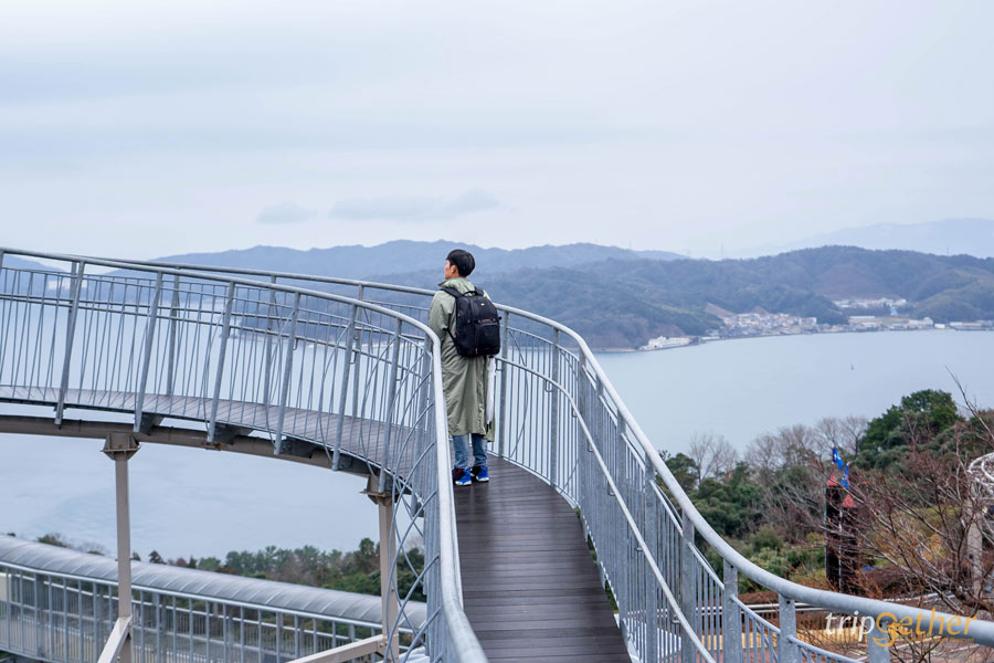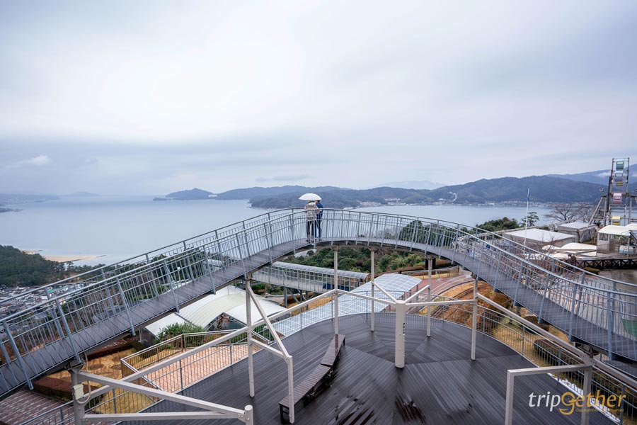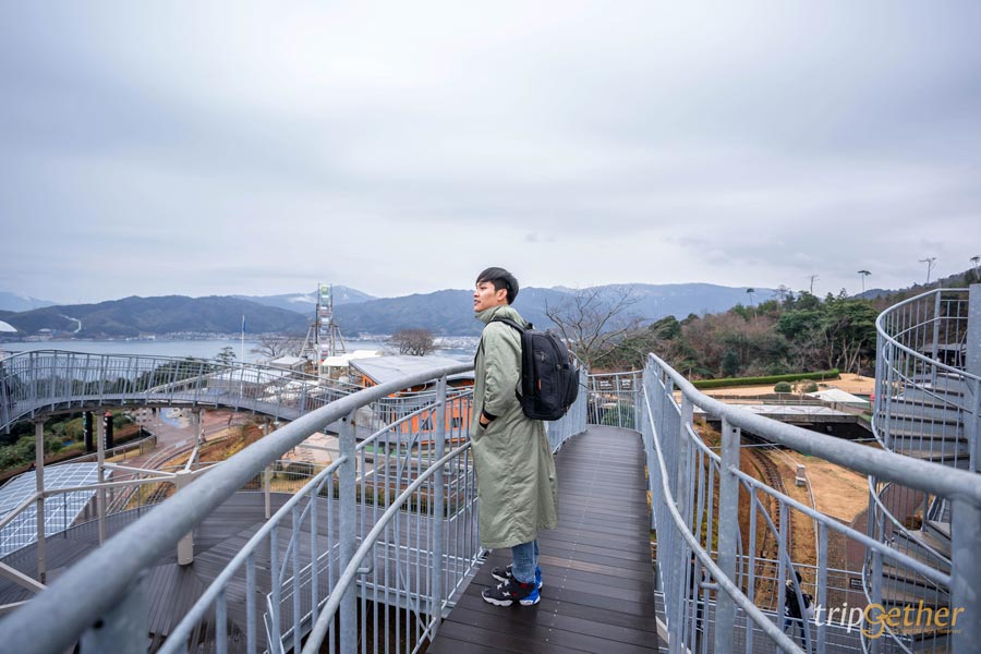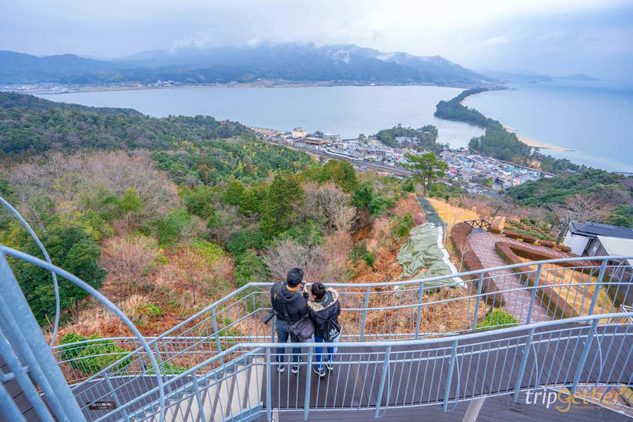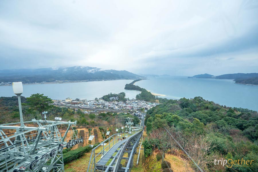 ถ้าใครมีโอกาสมาถึ งอามาโนะฮาชิดาเตะ แล้ว สิ่งที่ห้ามพลาดเด็ดขาดคือการขึ้นไปที่ Amanohashidate View Land จุดชมวิวที่ได้รับการยกย่องว่าสวยที่สุด 1 ใน 3 ของประเทศญี่ปุ่น สามารถนั่งกระเช้าหรือโมโนเรลขึ้นไปด้านบน แล้วจะได้เห็นวิวของสันทรายอามาโนะฮาชิดาเตะแบบเต็มตา จากมุมสูงที่เห็นทั้งทะเล ป่า และเส้นทรายเชื่อมแผ่นดินเข้าด้วยกันอย่างชัดเจน