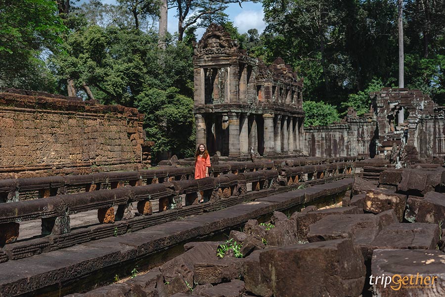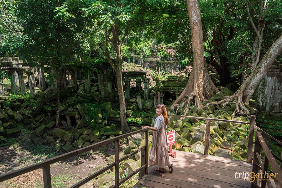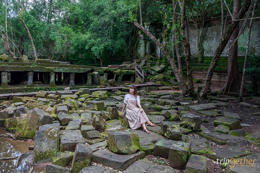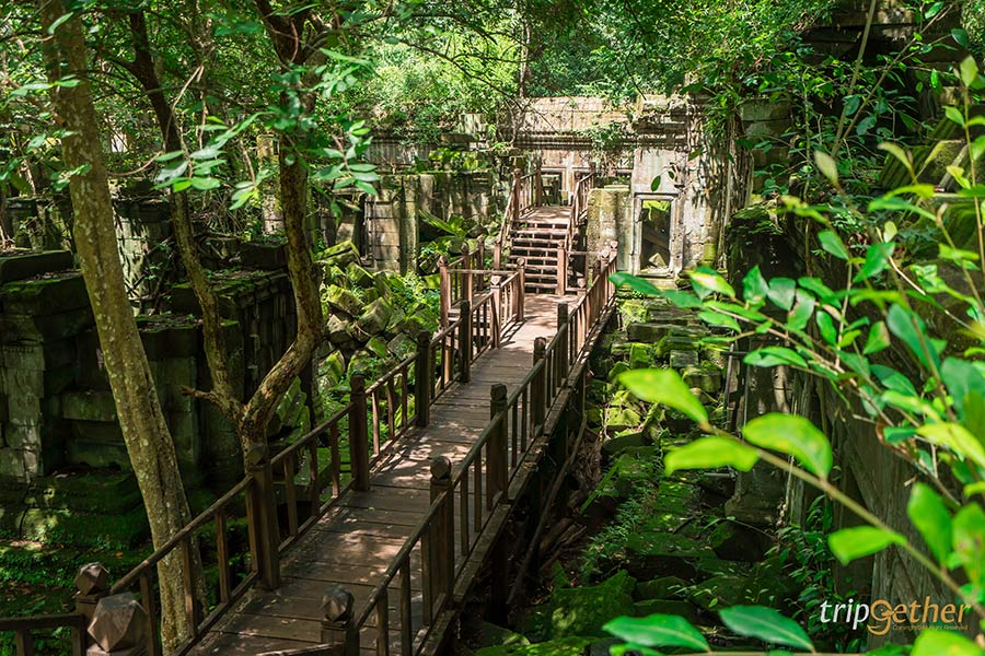 ปราสาทเบ็งเมเลีย ปราสาทที่ถูกปล่อยร้างไว้กลางธรรมชาติ ภายในเต็มไปด้วยเศษอิฐและหิน รวมถึงมีปราสาทบางส่วนถูกทำลาย แต่ถึงอย่างนั้นก็ยังควรค่าแก่การมาเยี่ยมชมสักครั้ง ความสำคัญของที่นี่ก็คือ เป็นปราสาที่สร้างมาก่อนนครวัดและเชื่อว่าเป็นต้นแบบของนครวัด ดังนั้นความยิ่งใหญ่ไม่แพ้กันเลย บรรยากาศของที่นี่จะคล้ายกับปราสาทตาพรหม ที่ถูกปกคลุมไปด้วยรากไม้ ต้นไม้ มอส มีความร่มรื่น บวกกับเป็นทางเดินไม้ ให้ฟีลเหมือนเส้นทางศึกษาธรรมชาติ ทำให้สามารถเดินได้สบายๆ และระยะทางเพียง 1 กิโลเมตรเท่านั้น