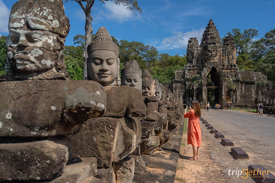เมื่อพูดถึงนครวัดไปแล้ว ชื่อที่มาคู่กันก็คือ นครธม หลายคนจะเข้าใจว่าทั้ง 2 สถานที่นี้คือที่เดียวกัน แต่จริงๆ แล้วไม่ใช่ นครธมเป็นเมืองหลวงสุดท้ายที่แข็งแกร่งที่สุดของอาณาจักรเขมร ภายในมีทั้งปราสาท ลานกิจกรรม พระราชวัง ตำหนักนางสนมต่างๆ เรียกได้ว่ามีพื้นที่กว้างมาก ส่วนจุดเช็คอินแรกที่ห้ามพลาด เริ่มตั้งแต่ทางเข้าที่มีรูปปั้นกวนเกษียรสมุทรและซุ้มประตูที่แกะสลักเป็นรูปหน้าองค์เทพ และอีกไฮไลท์เด่นๆ คือ ปราสาทบายน ที่ถูกยกย่องให้เป็นหนึ่งในสถาปัตยกรรมที่มีโครงสร้างซับซ้อนที่สุดและบนยอดปราสาทจะมีการแกะสลักหน้าองค์เทพทั้ง 4 ทิศ บอกเลยว่าประณีตอลังการสุดๆ และต่อมาก็คือ ปราสาทบาปวน ปราสาท 3 ชั้นที่ตั้งอยู่ท่ามกลางป่าไม้ บวกกับเป็นศาสนสถานให้ได้กราบไหว้ บรรยากาศรอบๆ จึงเต็มไปด้วยความเงียบสงบ