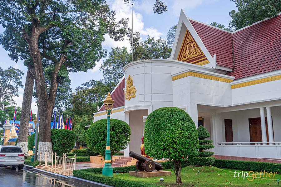 พระตำหนักเสียมราฐ อยู่ในบริเวณเดียวกับศาลพระองค์เจ๊กพระองค์จอม เดินมาไม่ไกลจะเจอกับอาคารสีขาวแดง ตั้งอยู่ท่ามกลางต้นไม้ไหญ่ บรรยากาศตรงนี้เงียบสงบมาก โดยที่นี่เป็นเหมือนที่พักตากอากาศของกษัตริย์กัมพูชา ส่วนหน้าด้านหน้าพระตำหนักเป็นพื้นที่โล่ง มีสวนให้ได้นั่งพักผ่อนและมีรูปปั้นบุคคลสำคัญของกัมพูชา