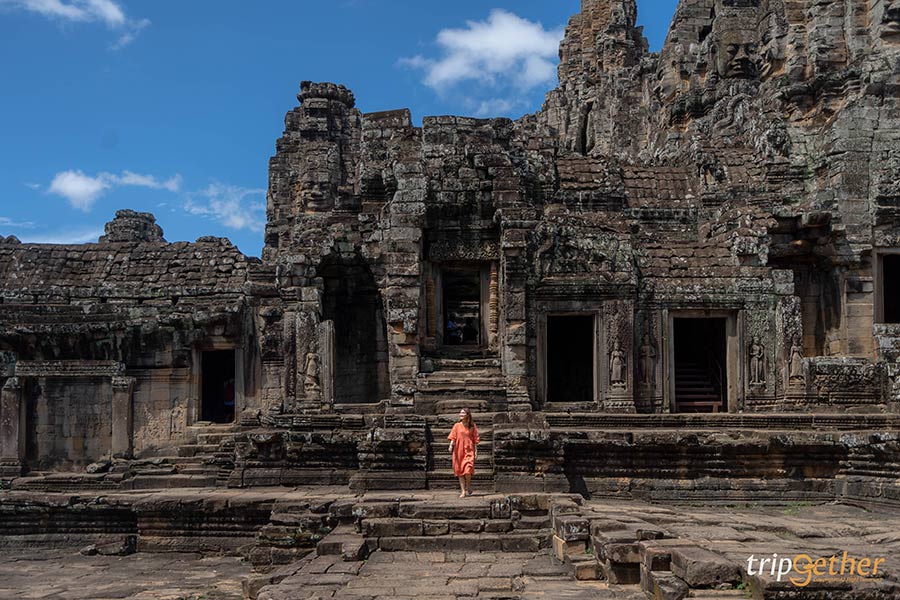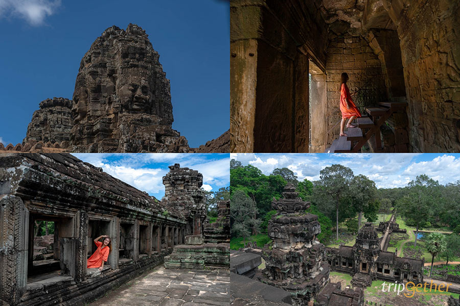นครวัด โบราณสถานที่ความสำคัญมากที่สุด สังเกตได้จากธงประจำชาติของกัมพูชาก็มีรูปนครวัดปรากฏอยู่ รวมถึงยังเคยเป็น 1 ใน 7 สิ่งมหัศจรรย์ของโลก ตัวนครวัดเป็นสถาปัตยกรรมเขมรที่ถูกสร้างมาตั้งแต่ยุครุ่งเรื่อง มีจุดมุ่งหมายเพื่อพิธีกรรมทางศาสนาและแสดงความเคารพต่อเทพเจ้า ดังนั้นการออกแบบและตัวปราสาทล้วนแต่ยิ่งใหญ่ อีกทั้งทุกจุดของนครวัดเต็มไปด้วยเรื่องราว และหนึ่งในไฮไลท์ คือ รูปแกะสลักรอบปราสาทที่ยาวกว่า 800 เมตร ซึ่งภาพที่มีชื่อเสียงที่สุดที่ใครมาก็ต้องตามหาก็คือ รูปแกะสลักกวนเกษียรสมุทรและรูปแกะสลักนางอัปสร นอกจากนี้ภายในนครวัดยังมีมุมให้ได้ถ่ายรูปสวยๆ และจุดให้สายมูได้กราบไหว้อีกเพียบ การมาเที่ยวนครวัดควรเผื่อเวลาไว้สักครึ่งวัน เพราะพื้นที่กว้างและมีจุดเช็คอินเยอะ ส่วนช่วงเวลาที่แนะนำคือช่วงบ่ายๆ ไปจนถึงช่วงเย็นจะเป็นช่วงที่นครวัดสวยที่สุด