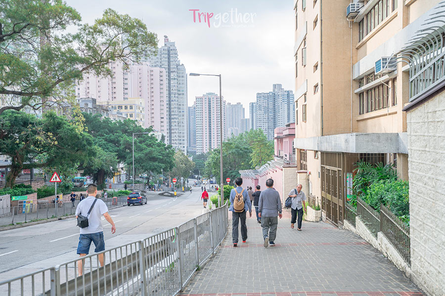 ไหว้พระขอพรกันเรียบร้อย ก็เดินเท้ากันต่อเลย ซึ่งเส้นทางจะเป็นเนินไล่ระรับขึ้นไปเรื่อยๆ ซึ่งจากจุดนี้เราสามารถนั่งรถเมล์ไปลงที่ปากทางขึ้น Lion Rock ได้ แต่ด้วยความฟิตของเท่านั้นเดินทางกันตั้งแต่สถานี Wong Tai Sin กันเลยค่ะ