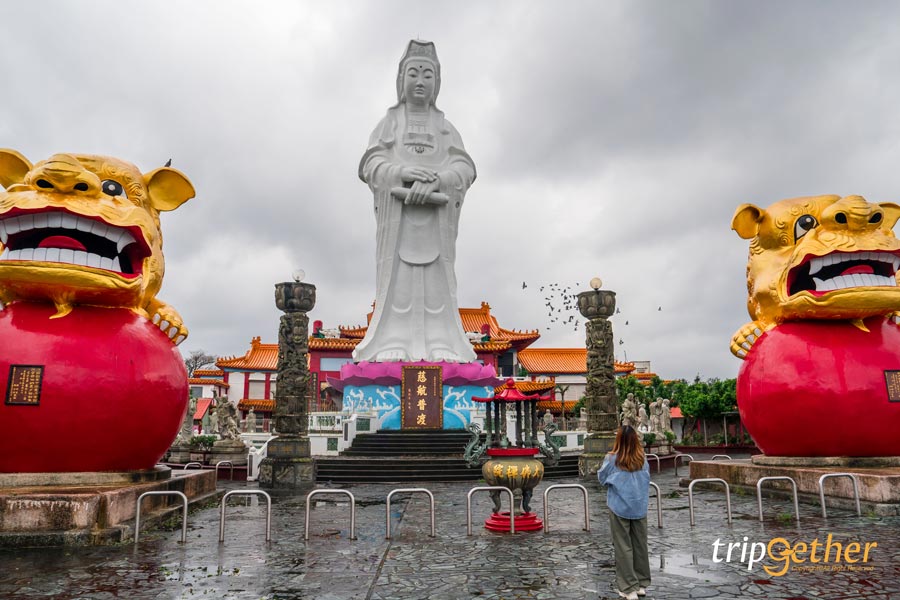 สวนสาธารณะจงเจิ้ง หรือ Zhongzheng Park วัดสวยบนยอดเขา ตั้งอยู่ด้านข้างของภูเขาต้าซาวาน ไฮไลท์ของที่นี่คือ รูปปั้นเจ้าแม่กวนอิมสีขาวบริสุทธิ์ ตั้งตระหง่านยู่ตรงกับประตูทางเข้าวัด มีความสูงถึง 25 เมตร และเป็นองค์ที่ใหญ่ที่สุดในภูมิภาคเอเชียตะวันออกเฉียงใต้อีกด้วย ด้านในของที่นี่จะแบ่งเป็น 3 ส่วน ได้แก่ป้อมปืนใหญ่ ที่มีความสำคัญทางประวัติศาสตร์ ถัดมาเป็นส่วนที่ 2 คือห้องสมุดพุทธศาสนา และวัดจู่ผู่ถัน บอกเลยว่าเป็น พิกัดไหว้เจ้าแม่กวนอิม ในต่างประเทศ ที่ควรแค่แก่การไปเยือนสุดๆ