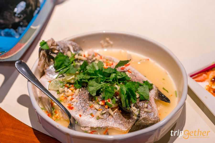 เมนูปลากะพงนึ่งมะนาว อาจจะไม่จัดจ้านเท่าเมืองไทยเรา แต่ความสดของวัตถุดิบยกนิ้วให้เลยค่ะ