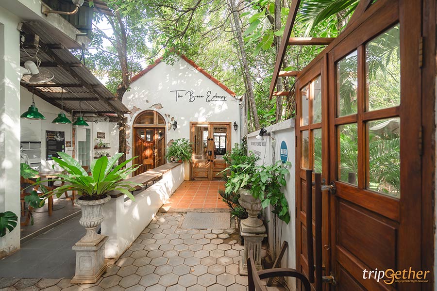 The Bean Embassy คาเฟ่เสียมราฐสุดน่ารักกับบรรยากาศโฮมมี่ๆ ตัวร้านออกแบบเรียบง่าย มีความมินิมอล บวกกับการคุมโทนด้วยเฟอร์นิเจอร์และของตกแต่งจากไม้ ทำให้บรรยากาศโดยรวมอบอุ่น น่ามานั่งพักผ่อน อีกทั้งที่นี่ยังมีโต๊ะและที่นั่งให้เลือกเยอะมาก มีทั้งอินดอร์และเอาท์ดอร์ ในส่วนเอาท์ดอร์จะมาเป็นกลางสวนที่ร่มรื่น ใ้หฟีลเหมือนมานั่งเล่นหลังบ้าน และคอแฟต้องถูกใจกับรางวัล Barista Winning Award กาแฟรสชาติดี เข้ม และมีเมล็ดกาแฟให้เลือกหลายแบบ รวมถึงมีเมล็ดกาแฟซิกเนเจอร์เฉพาะของทางร้านด้วย บอกเลยว่าเป็นคาเฟ่ที่ฟีลดี น่ารักจนอยากไปซ้ำ