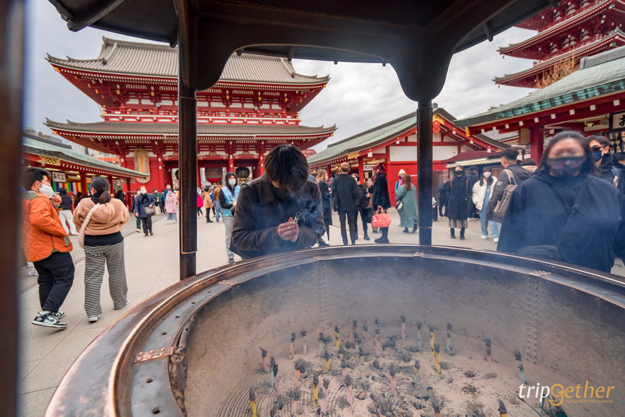 กลับมาไหว้พระที่โตเกียวกันที่ วัดเซ็นโซจิ (Sensoji Temple) หรือที่คนไทยเรียกกันว่า วัดอาซากุสะ วัดพุทธเก่าแก่ที่สุดของโตเกียว สร้างขึ้นตั้งแต่ปี ค.ศ. 628 ตำนานเล่าว่ามีชาวประมงสองพี่น้องจับได้รูปปั้น พระโพธิสัตว์คันนน ระหว่างหาปลา แล้วนำมาบูชา ก่อนจะกลายเป็นจุดกำเนิดของวัดแห่งนี้ และมีความเชื่อว่าก่อนเข้าไปสักการะ ให้พัดควันธูปเข้าหาตัวเล็กน้อยตามความเชื่อญี่ปุ่น เพื่อชำระล้างสิ่งไม่ดี แล้วค่อยเข้าไปกราบขอพรด้านใน สามารถขอพรได้ทุกเรื่องเลยนะ ไม่ว่าจะเรื่องสุขภาพ ความรัก หรือความสำเร็จ ก็ขอได้หมด! นอกจากนี้ยังมีจุดไฮไลท์ที่ต้องมาถ่ายรูปเช็คอินเลยก็คือ ประตูคามินาริมง (Kaminarimon) ที่มีโคมแดงยักษ์สูงกว่า 4 เมตร เรียกได้ว่าเป็นแลนด์มาร์กประจำโตเกียวเลยทีเดียว