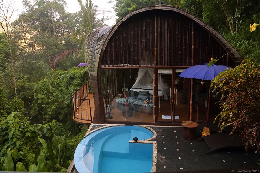 Villa awang awang วิลลาที่ตั้งตระหง่านอยู่กลางป่าใหญ่ของบาหลี 1 ใน 34 จังหวัดของประเทศอินโดนีเซีย จากสระว่ายน้ำในห้องพักสามารถมองเห็นวิวสวยๆ ของแม่น้ำศักดิ์สิทธิ์ Petanu และภูเขาไฟกุนุงอากุง (Gunung Agung) ได้อย่างชัดเจน ที่นี่คุณจะได้สัมผัสกับสุดยอดความงามตามธรรมชาติของบาหลี อีกทั้งมนต์เสน่ห์ที่น่าหลงไหลของศิลปวัฒนธรรมรอบๆ ที่พัก นอกจากอาหารและสิ่งอำนวยความสะดวกที่เพียบพร้อมแล้ว อีกหนึ่งจุดเด่นของที่นี่คือ กิจกกรรมสุดท้าทายและได้ใกล้ชิดธรรมชาติที่รออยู่ เช่น ปีนภูเขาไฟ ล่องแก่ง เรียนทำอาหารบาหลี เยี่ยมชมหมู่บ้านและสถานที่ทางประวัติศาสตร์ที่น่าสนใจ โยคะ ทำผ้าบาติก ฯ ที่แห่งนี้จึงเหมาะเป็นอย่างยิ่งสำหรับการมาพักผ่อนเพื่อชาร์ตพลังงานให้กับชีวิต