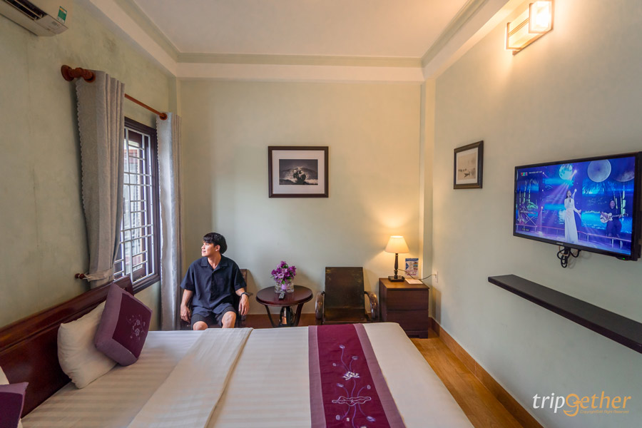 มาต่อกันที่ อัน ฮอย ทาวน์ โฮมสเตย์ (An Hoi Town Homestay) โฮมสเตย์เล็กๆ ที่ตั้งอยู่ใกล้กับเขตเมืองมรดกโลกที่มีชื่อเสียงในระดับโลก อย่าง เมืองฮอยอัน บรรยากาศเต็มไปด้วยความร่มรื่นและความสงบ ห้องพักของที่นี่ถึงจะเป็นโฮมสเตย์แต่สะดวกสบายเหมือนได้นอนโรงแรมเลยทีเดียว มีสิ่งอำนวยความสะดวกครบ ทั้งที่นั่ง ทีวี ตู้เสื้อผ้ามาให้ครบ แถมเจ้าของยังน่ารักเป็นกันเองแบบสุดๆ ฟีลเหมือนมานอนบ้านญาติผู้ใหญ่เลยล่ะ
