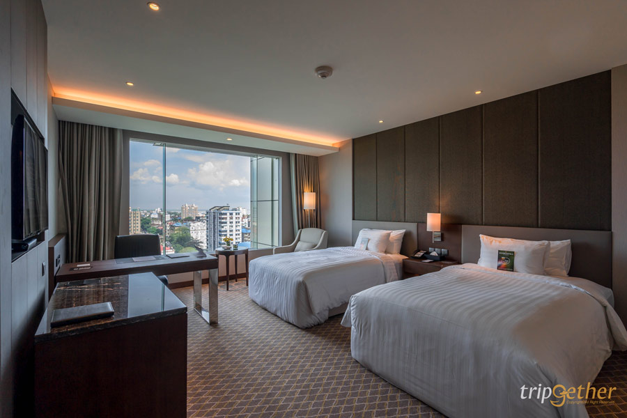 มาปิดท้ายกันที่ พูลแมน ย่างกุ้ง เซ็นเตอร์พอยต์ (Pullman Yangon Centrepoint) โรงแรมหรูระดับ 5 ดาว ย่านใจกลางเมือง ที่สามารถเดินเพียงใกล้ๆ ไปยังสถานีรถไฟย่างกุ้งได้เลย ดีไซน์ของที่พักถูกออกแบบมาเพื่อเน้นการพักผ่อนที่แสนสะดวกสบาย ห้องพักแต่ละห้องตกแต่งสวยงาม มีเฟอร์นิเจอร์หรูหรา มาพร้อมสิ่งอำนวยความสะดวกครบ นอกจากนี้ยังมีสระว่ายน้ำเด็ก และสระว่ายน้ำกลางแจ้งและมุมพักผ่อนให้ถ่ายรูปเล่นกันได้อีกด้วยนะ