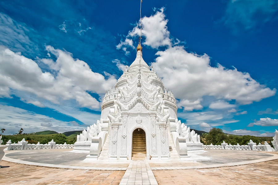 เจดีย์ชินพิวเม หรือ เมียะเต็งดานเจดีย์ เป็นเจดีย์สีขาวสะอาดตา สร้างอยู่บนฐาน 7 ชั้นรูปเกลียวคลื่น นอกจากจะสวยงามก็ยังมีความสำคัญ คือ เป็นอนุสรณ์สถานความรักอันยิ่งใหญ่ของพระเจ้าบากะยีดอว์ที่มีต่อพระมหาเทวีชินพิวมิน จึงได้ชื่อว่าเป็น “ทัชมาฮาลแห่งอิรวดี” ทั้งเรื่องราวและสถาปัตยกรรมที่โดดเด่น ที่นี่จึงเป็นหนึ่งในแลนด์มาร์กของมัณฑะเลย์ที่ห้ามพลาด โดยเฉพาะมุมบันไดทางขึ้นที่เป็นเกลียวคลื่นขาว ถือว่าเป็นไฮไลท์ที่มาแล้วต้องถ่ายรูป และเมื่อเดินขึ้นไปจนถึงบนพระเจดีย์ จะมีพระพุทธรูปให้กราบสักการะ เรียกได้ว่ามาที่เดียวได้ทั้งไหว้พระขอพรและได้รูปสวยๆ กลับไปแน่