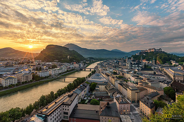 จุดชมวิว ใกล้ๆ Museum der Moderne Mönchsberg มีแม่น้ำ Salzach ไหลผ่านกลางเมืองแบ่งเป็นฝั่งเมืองเก่าและใหม่ ส่วนตัวคิดว่าเป็นจุดชมวิวที่สวยที่สุดของSalzburgเลยครับ ขึ้นมาทั้งเช้าและเย็น