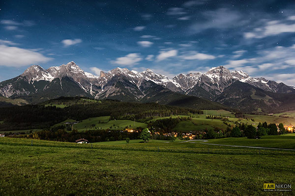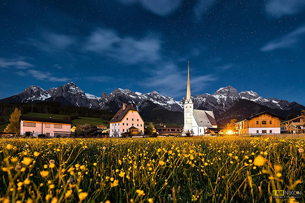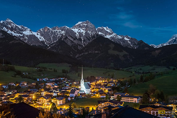 <<< Maria ALM >>> หลังจากที่แวะเข้าเยอรมันเพื่อไป Konigssee Lake คืนนั้นเรามานอนค้างกันที่เมือง Maria ALM เป็นเมืองนอกกระแส ไม่ค่อยมีคนมาเที่ยวสักเท่าไหร่ นอกจากหน้าหนาวเพราะเมืองแถวๆนี้จะมีชื่อเรื่องสถานที่เล่นสกี กว่าจะมาถึงโรงแรมก็ประมาณห้าทุ่มได้แล้ว ทั้งโรงแรมมีผมพักอยู่ห้องเดียว เปลี่ยวๆน่าดู ที่เลือกมาค้างที่นี้เพราะไปเจอรูปแนวเทือกเขา Steinernen Meer ที่เป็นส่วนหนึ่งของเทือกเขา Alps เข้าให้ ชอบมากเลยต้องมาให้เห็นกับตา ออกไปถ่ายก็ประมาณเที่ยงคืน ถ่ายได้ไม่เท่าไหร่ก็ต้องกลับไปพักละครับ เพลียจัด ขับรถทั้งวัน เสียดาย ตอนเช้าเมฆมาจากไหนไม่รู้เยอะแยะ เลยไม่ได้เก็บรูปตอนเช้าสวยๆมาเลย