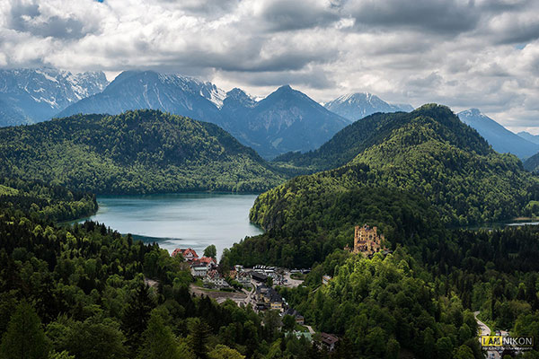 วิวปราสาท Hohenschwangau Castle กับ ทะเลสาบ Alpssee จาก Neuschwanstein Castle