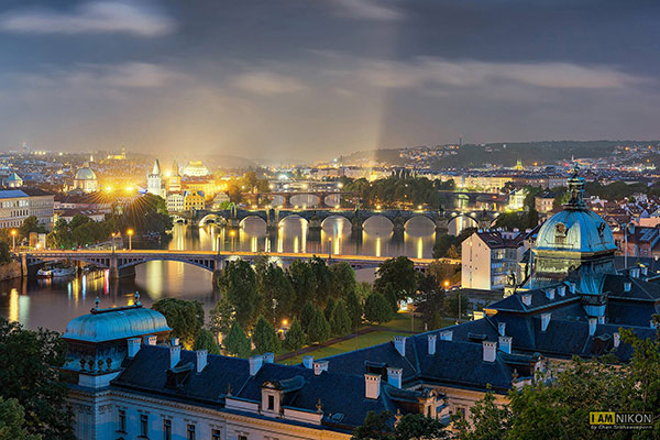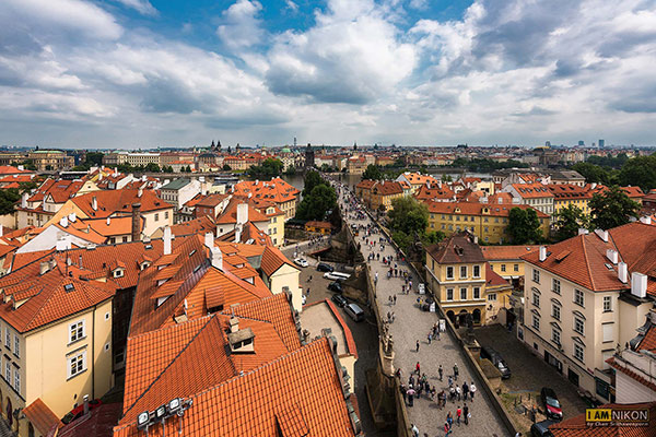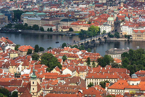 <<< Prague >>> เมืองหลังคาแดง มองจากมุมสูงหันไปทางไหนก็เห็นแต่หลังคาสีแดงเต็มไปหมด สะพานชาร์ลส์ Charles Bridge ถ่ายจากจุดชมวิวบนหอคอย Petrin tower