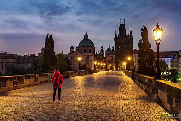 ถ้าอยากได้ถ่ายรูปกับสะพานชาร์ลส์แบบโล่งๆ ก็ต้องมาตอนเช้าตรู่ครับ ตอนสายๆถึงดึกบนสะพานจะมีแต่พ่อค้าแม่ค้าและนักท่องเที่ยวเต็มไปหมด