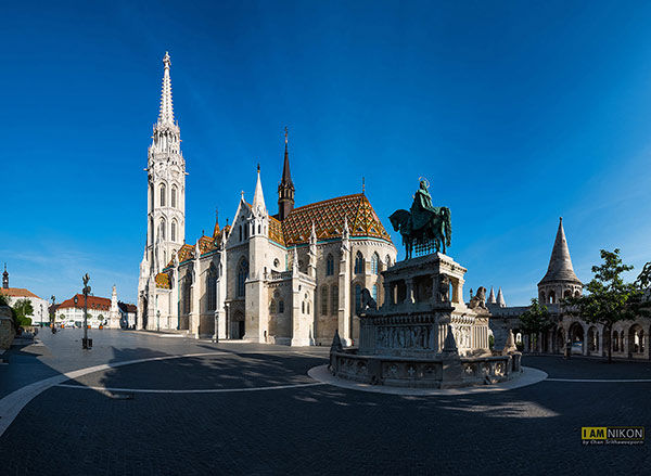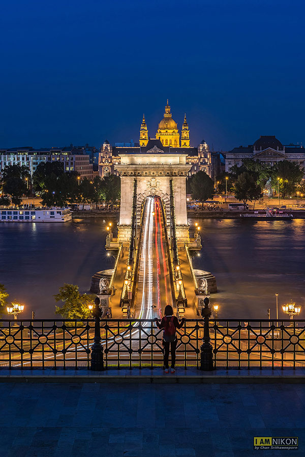 Chain Brigde ด้านหลังเป็นยอดของโบสถ์ St. Stephen Basilica