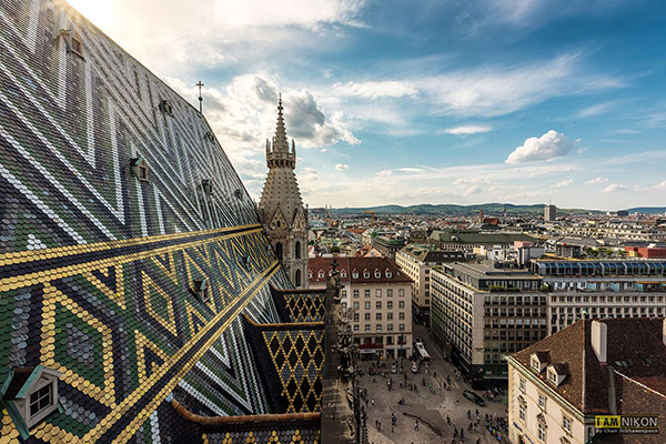 เราสามารถขึ้นหอคอยเพื่อไปชมหลังคาโบสถ์ และวิวมุมกว้างของเวียนนาได้