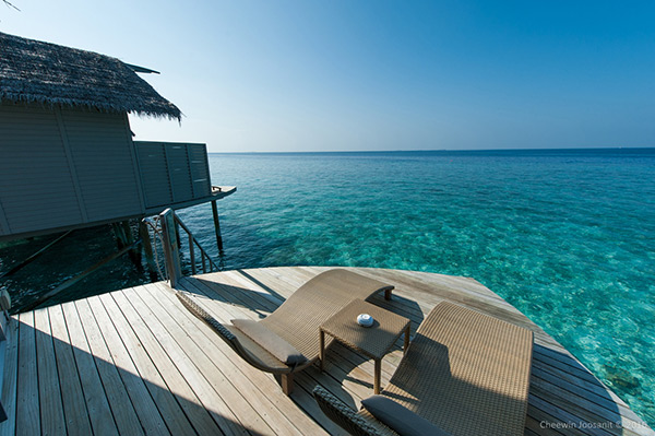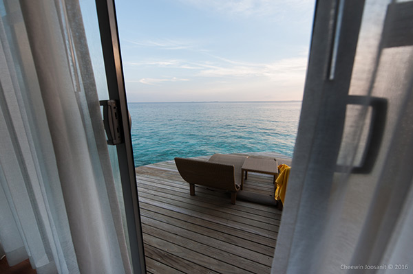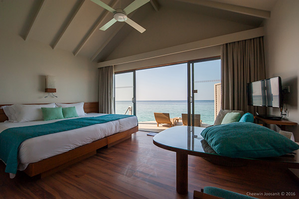 ห้องพัก Deluxe Water Villa ห้องสวยโปร่งโล่งสะอาด เเค่เดินลงบันไดที่ระเบียงหน้าบ้าน ก็ได้ดำน้ำดูปะการังและปลาสวย ๆ เเล้ว เช้าตื่นมาเปิดม่าน มองออกไปเห็นทะเลสีครามเคล้าเเสงเเดดยามเช้า มันเป็นอะไรที่ฟินมากครับ