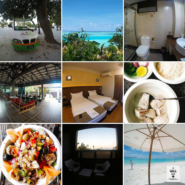 พักที่ไหนดี ? บนเกาะ Dhiffushi อันแสนห่างไกล ที่พักที่เลือก…แน่นอนต้องถูกและดี Rashu Hiyaa เป็นโรงแรมที่ดีที่สุดบนเกาะ Dhiffushi กับสนนราคาค่าห้องประมาณ 2,800บาท (แพคเกจจองกับ Expedia) พร้อมอาหารเช้าและซีวิว พูดเลยว่าถูกและดีมาก ห้องใหม่ ดี สะอาดมาตรฐานสี่ดาว (เตียงดูดวิญญาณมากค่ะ) ไวไฟดี ทีวีดีชัดแจ๋ว ช่องเยอะ อาหารเช้าดี ความสะดวกสบายเต็มร้อย พนักงานดีมากกก ราคา Day Trip ไม่แพงแถมไม่ไกลจากจุดดำน้ำดังๆหลายแห่ง – ราคา Tour ประมาณ 25USD /คน/ทริป ทั้งSnorkel, Sand Bank, ปลาโลมา, Sun Set Cruise, ตกปลา etc. (อย่าลืม + service charge + Gov Tax ด้วยนะคะ)