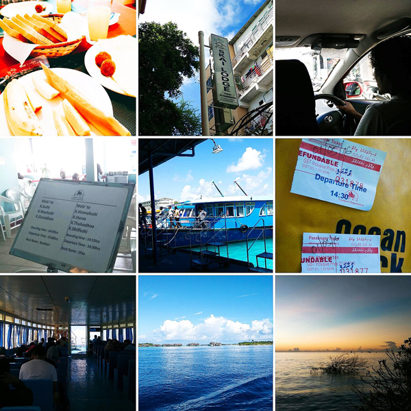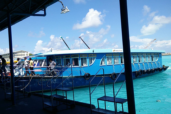เรือโดยสารไปเกาะ Dhiffushi ใช้เวลาประมาณ 3-3.30 ชั่วโมง บนเรือมีห้องน้ำ มีบูทขายขนม เครื่องดื่ม นั่งชิลล์ๆไปกับชาวมัลดิเวียนบนเรือที่คุยกันสนุกสนาน บางคนก็ไปช๊อปปิ้งมา รื้อค้นของมาอวดกันบนเรือเป็นที่สนุกสนาน ราวกับว่าทุกคนรู้จักมักคุ้นกันเป็นอย่างดี