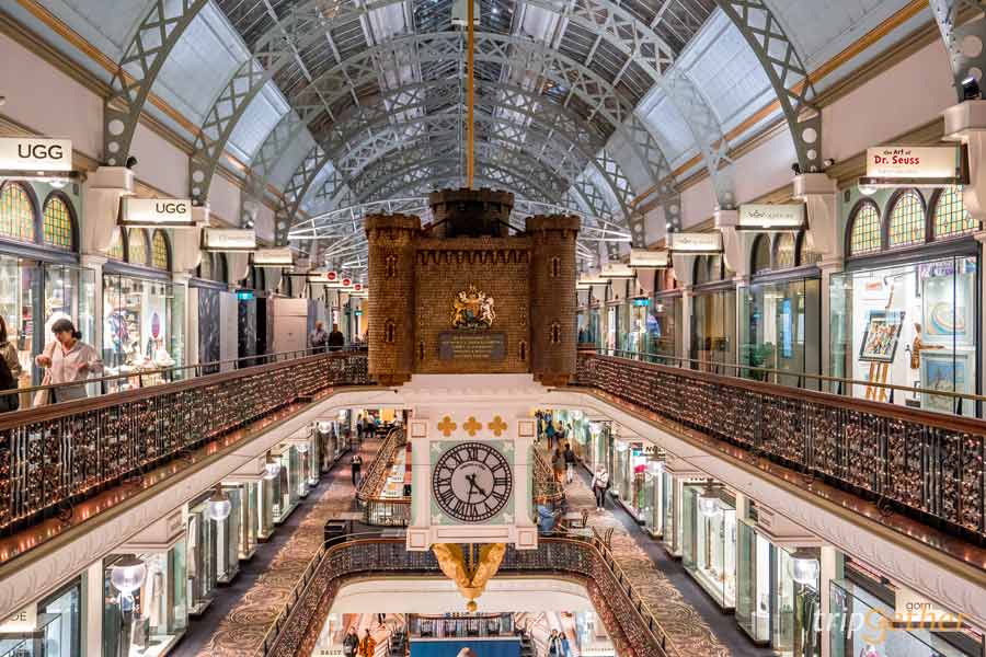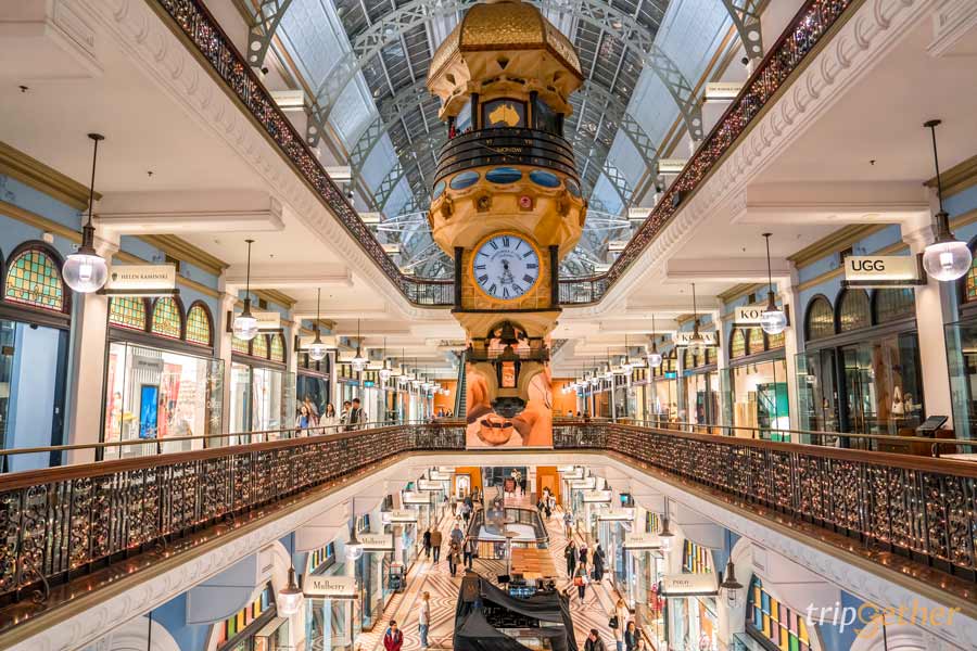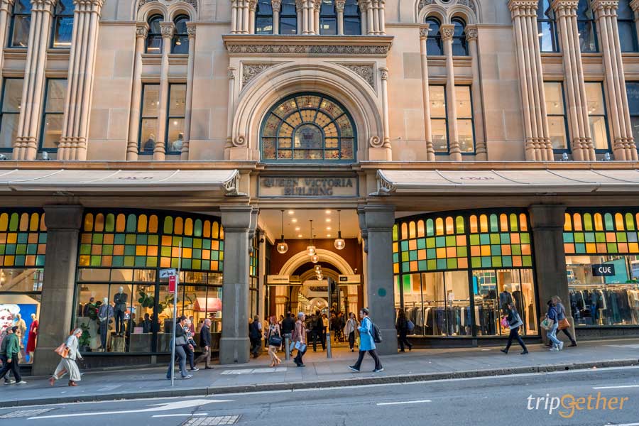 Queen Victoria Building ถือเป็น ที่เที่ยวซิดนีย์ ที่สายช้อปและสายถ่ายภาพไม่ควรพลาด เพราะด้านในเป็นช้อปปิ้งเซ็นเตอร์ 4 ชั้นลอย และ 2 ชั้นใต้ดิน เต็มไปด้วยร้านค้าหลากหลายมากมีเสื้อผ้า เครื่องแต่งกาย และเครื่องประดับแบรนด์ดัง ไปจนถึงร้านอาหาร คาเฟ่ ร้านน้ำชาโดยจะตั้งอยู่โถงตรงกลาง แต่ถ้าเป็นชั้นสองหรือสาม คาเฟ่ร้านชาต่างๆ จะวางโต๊ะรายล้อมรั้วเต็มไปหมด สั่งชาร้อนๆ มาจิบเบาๆ เป็นพร๊อพถ่ายรูปสไตล์คนติดแกลม!