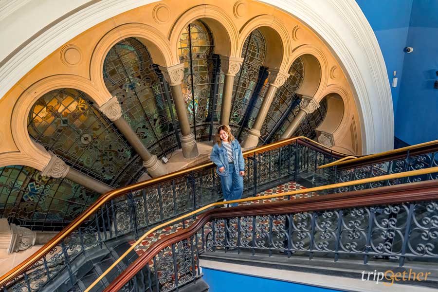 อีกหนึ่งเอกลักษณ์ของอาคารแห่งนี้คือกระจกสีที่ประดับประดาอย่างสวยงาม