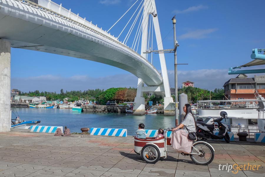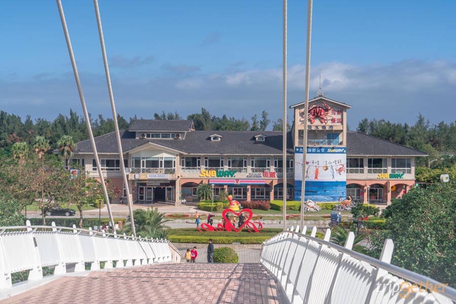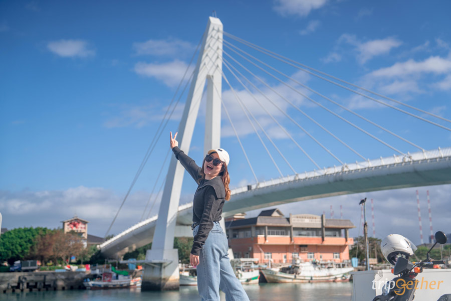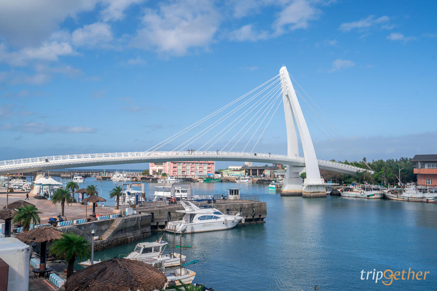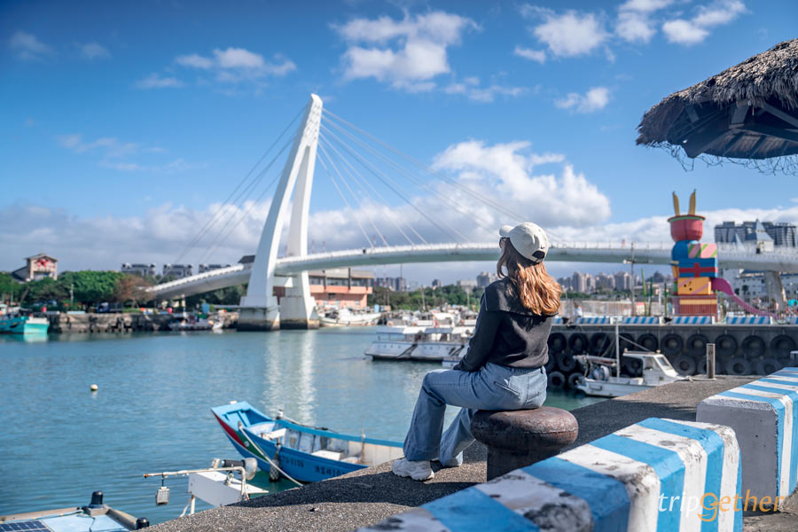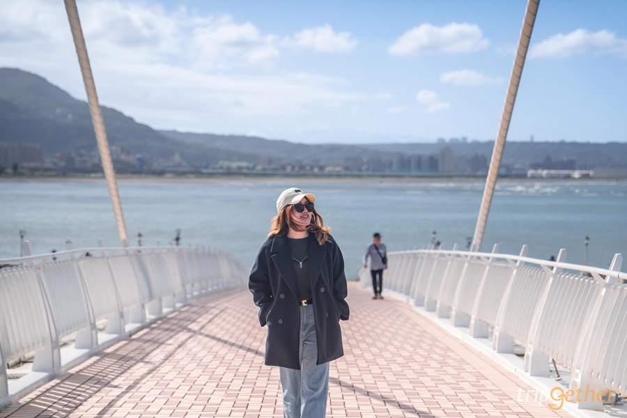 จุดเด่นของ Tamsui Fisherman’s Wharf คือ สะพาน Lover’s Bridge ที่มีรูปร่างสวยงามและเป็นสัญลักษณ์ของท่าเรือแห่งนี้ สะพานแห่งนี้ออกแบบให้เหมือนเรือใบและเปิดให้เห็นทิวทัศน์ของแม่น้ำและทะเล โดยดีไซน์สะพานมีลักษณะเหมือนเรือใบสีขาวที่กำลังกางใบ ความยาว 165 เมตร ซึ่งที่นี่คู่รักหลายคู่มักมาถ่ายภาพ Pre-wedding และเป็นสถานที่ถ่ายทำอันโด่งดังของหนังและซีรีย์หลายเรื่องเลยล่ะ ยามค่ำคืนสะพานแห่งนี้จะมีแสงสว่างสวยงามยิ่งเพิ่มความโรแมนติกให้กับคนที่มาถ่ายรูปยิ่งขึ้นไปอีก