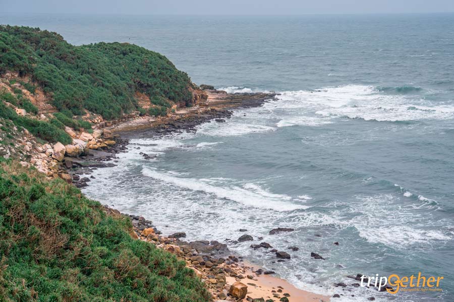 เราสามารถเดินเท้ามาจาก ท่าเรือประมงสุยเหว่ย (Shuiwei Fishing Harbour) ซึ่งอยู่ไม่ไกลนัก ลัดเลาะตามแนวโขดหิน เพื่อค้นหาความลึกลับของชายฝั่งแห่งความลึกลับที่มีความงามของธรรมชาติแห่งจินซานซ่อนอยู่ มาที่นี่เราจะเจอกับภาพวิวทะเลสีครามที่สวยงาม เงียบสงบ แนวชายฝั่งที่เป็นแนวโขดหินรูปร่าง และสีสันแปลกตา พร้อมกับมีน้ำทะเลซัดเข้าหาฝั่งตลอดเวลา