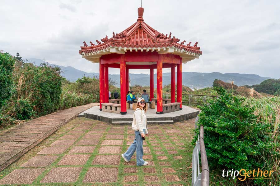 ก่อนกลับ ยังอีกจุดหนึ่งที่แวะไปเช็คอินถ่ายรูปคือศาลาสีแดงแปดเหลี่ยม ที่นี่เป็นอีกจุดเช็คอินถ่ายรูปที่ไม่ควรพลาด เราสามารถนั่งชมวิวทะเลสวยๆ สุดลูกหูลูกตาได้จากตรงนี้ด้วย