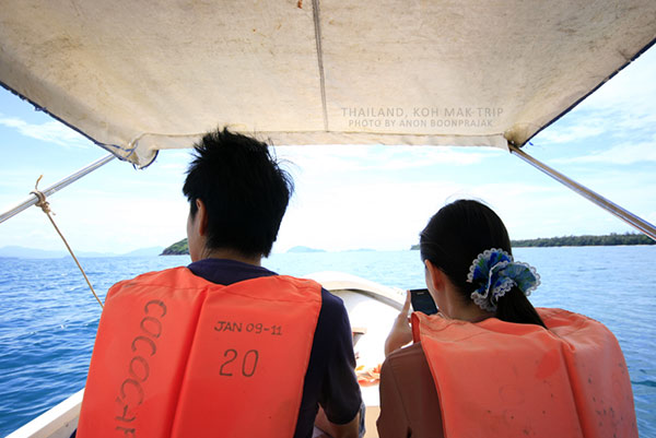 ระหว่างนั่งเรือลมแรงมาก เจอฝนระหว่างทางเล็กน้อย เลยไม่กล้าหยิบกล้องขึ้นมาถ่ายรูป ถึงแล้วเกาะหมาก เกาะหมากอยู่ทางฝั่งทะเลตะวันออกเลยเกาะช้างไปก่อนถึงเกาะกูด
